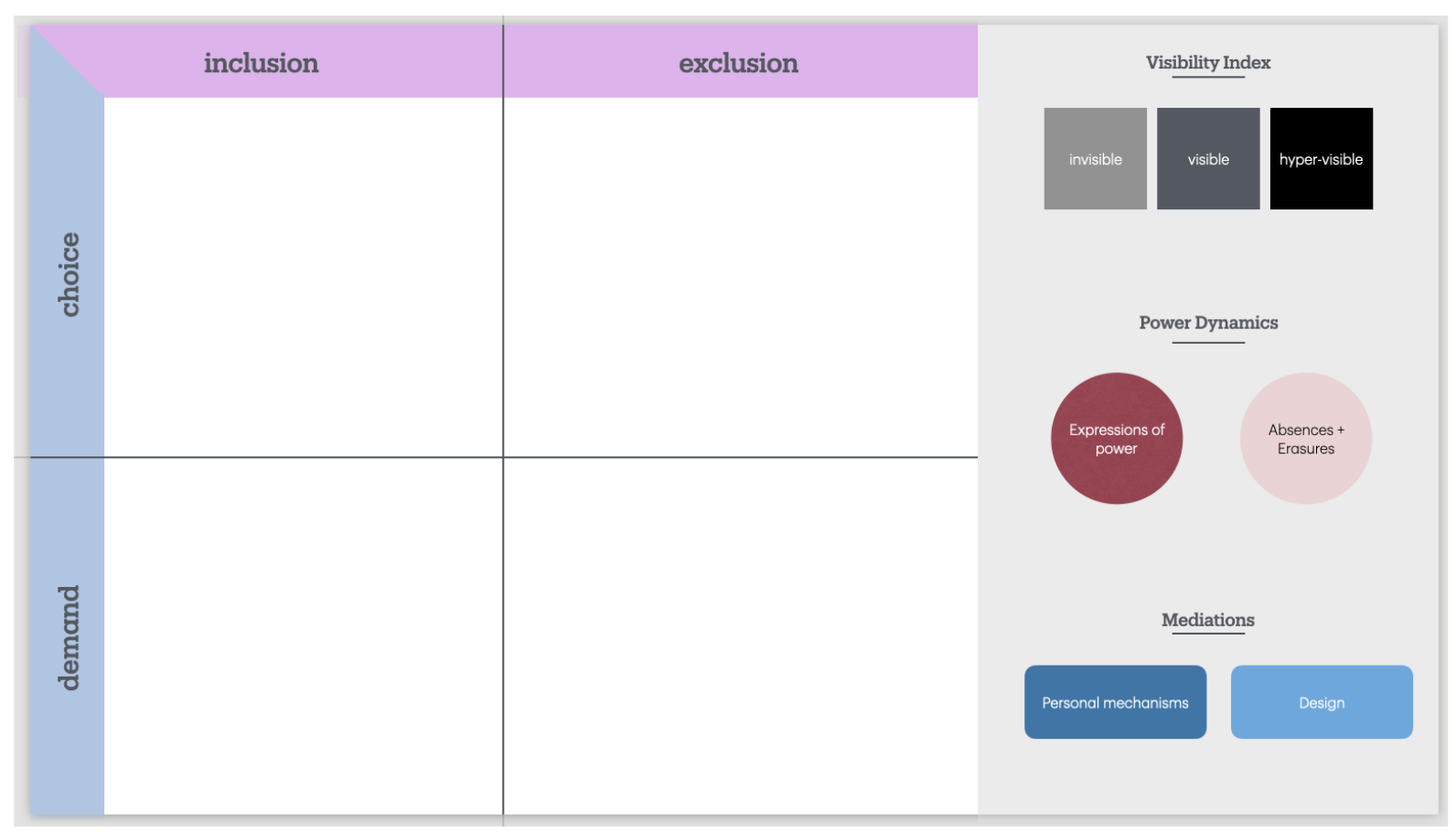 My framework for inviting students to interrogate the power dynamics embedded in design spaces and experiences.